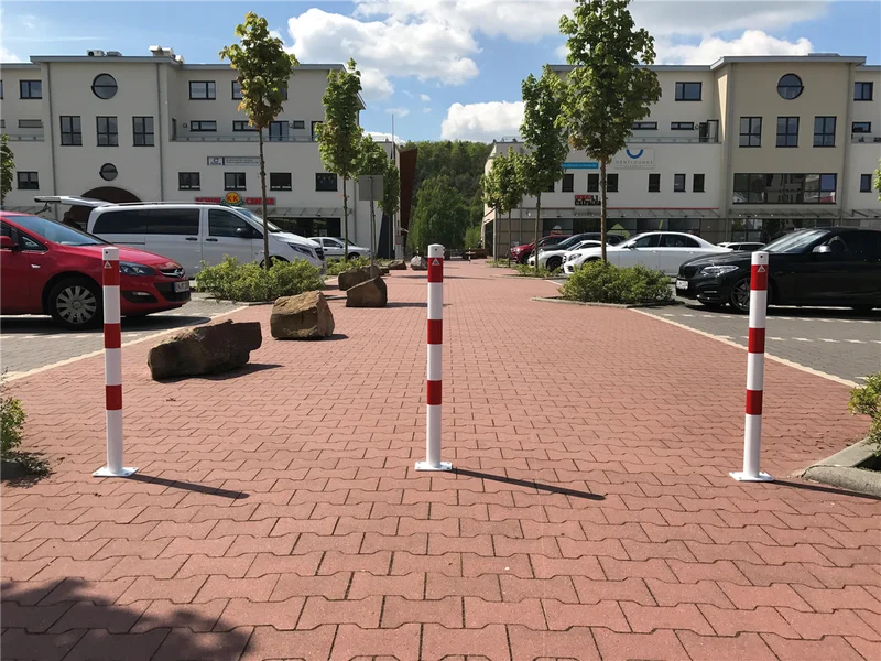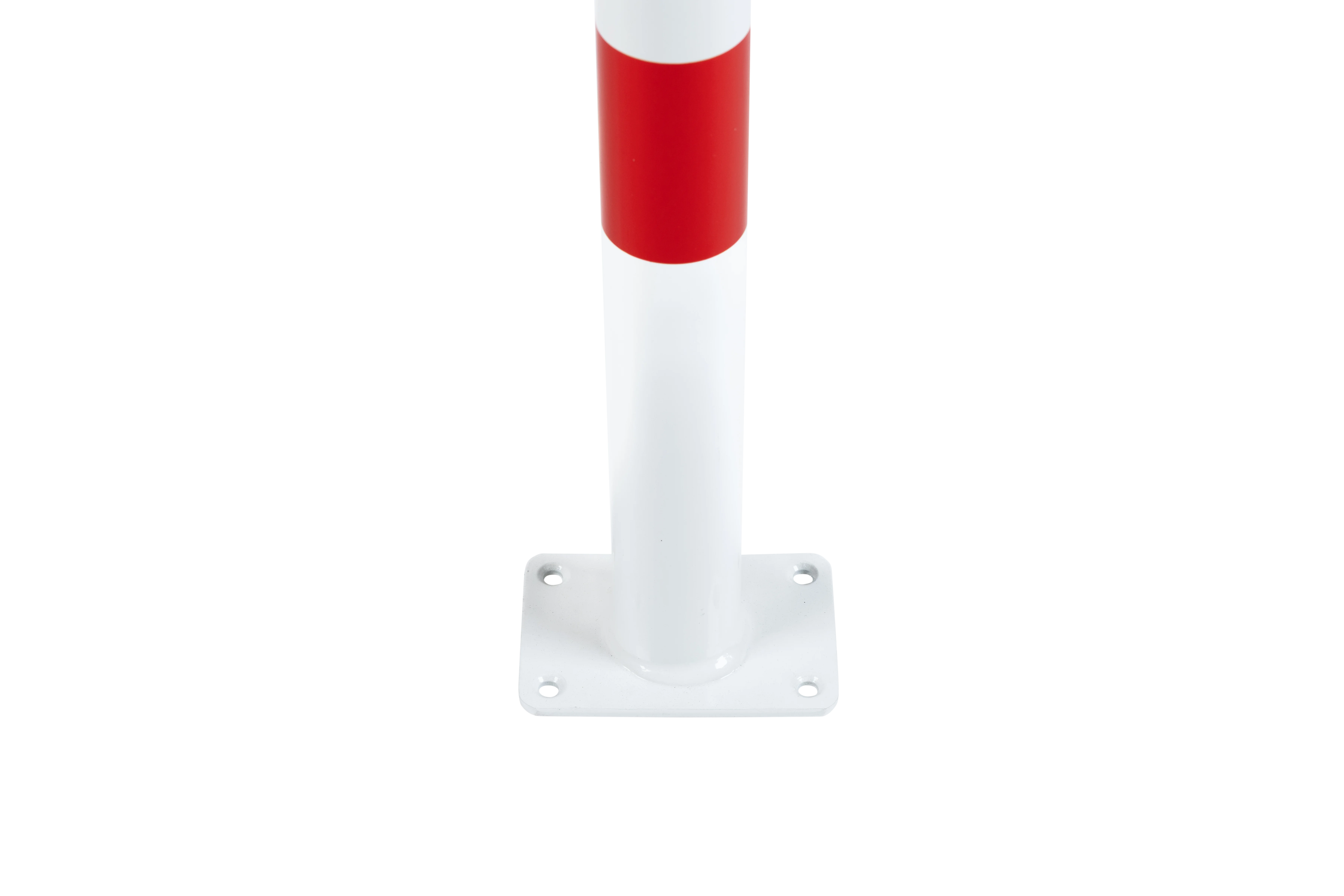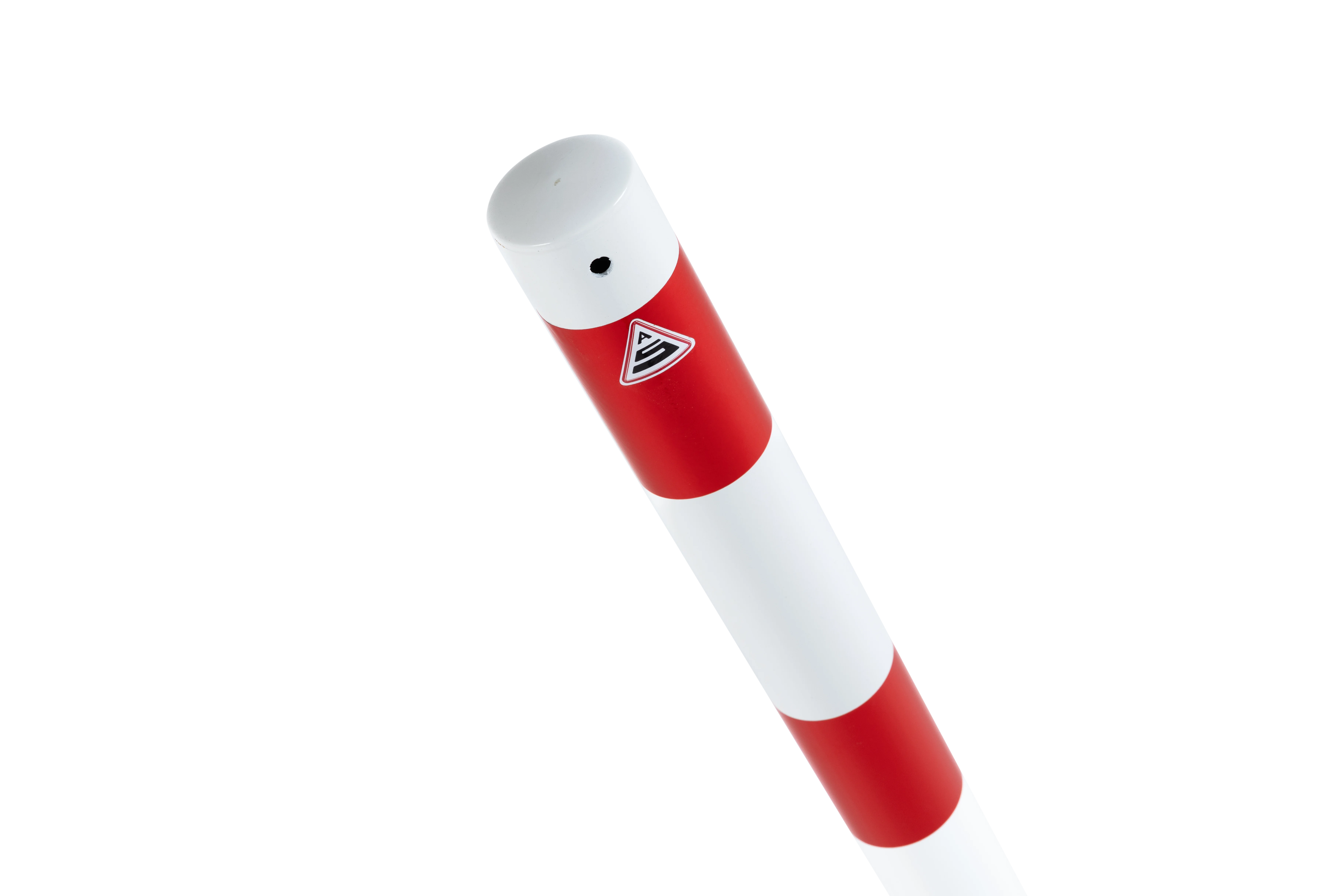 Die Oberfläche ist feuerverzinkt und weiß pulverbeschichtet und mit drei rot reflektierenden Leuchtstreifen ausgestattet – für optimale Sichtbarkeit bei allen Lichtverhältnissen. Der Absperrpfosten eignet sich ideal zur Sperrung von Gehwegen für Fahrzeuge oder zur Wegabgrenzung in öffentlichen und gewerblichen Bereichen.