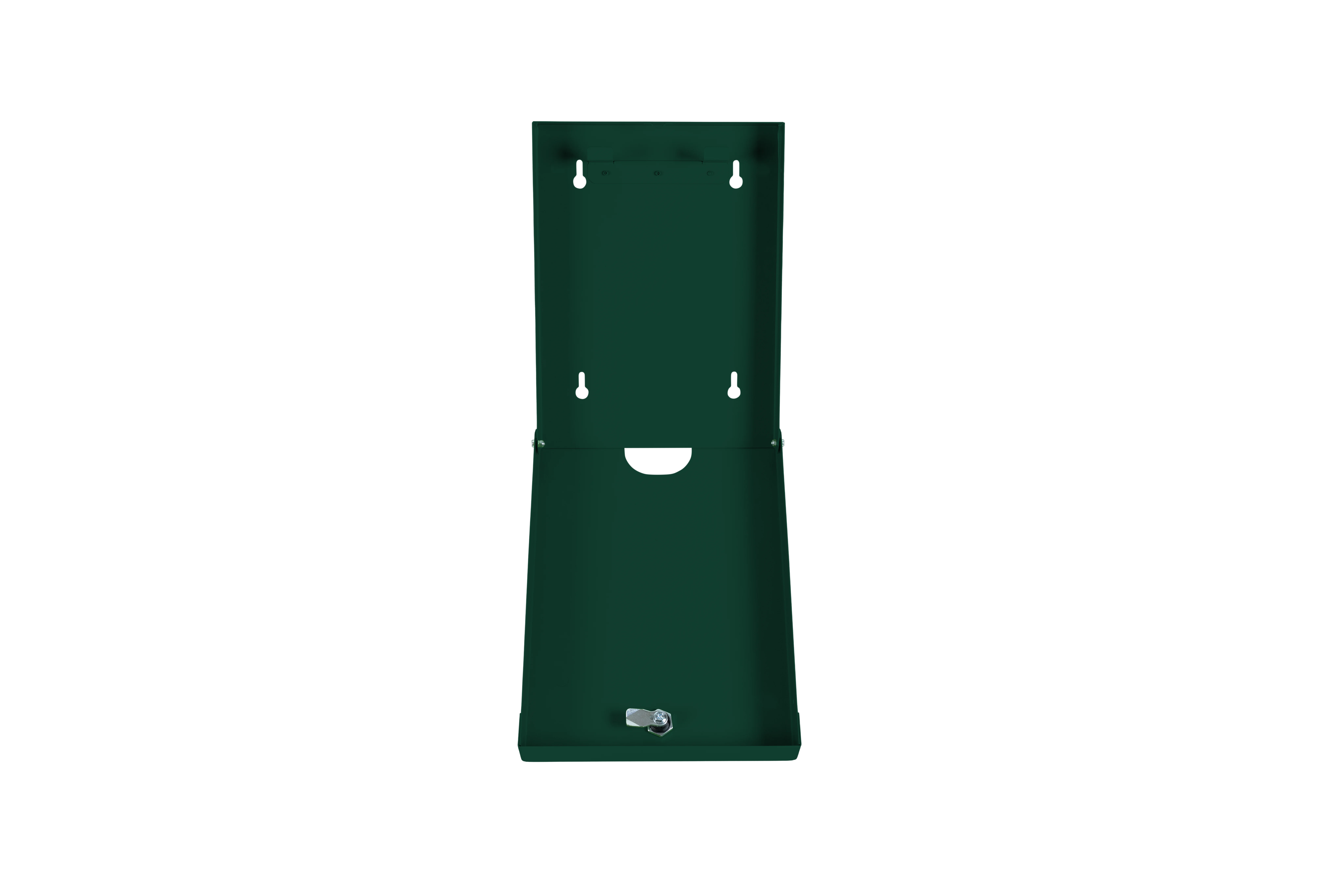 Die Wandmontage erfolgt auf stabilem Untergrund in ergonomischer Höhe für eine komfortable Beutelentnahme. Die Befestigungspunkte müssen mit geeigneten Dübeln und Schrauben an die jeweilige Wandbeschaffenheit angepasst werden. Der Zugang zur Entnahmeöffnung darf nicht durch Hindernisse blockiert sein. Zur Befüllung darf das Gehäuse nur durch befugte Personen mit dem passenden 3-Kant-Schlüssel geöffnet werden.