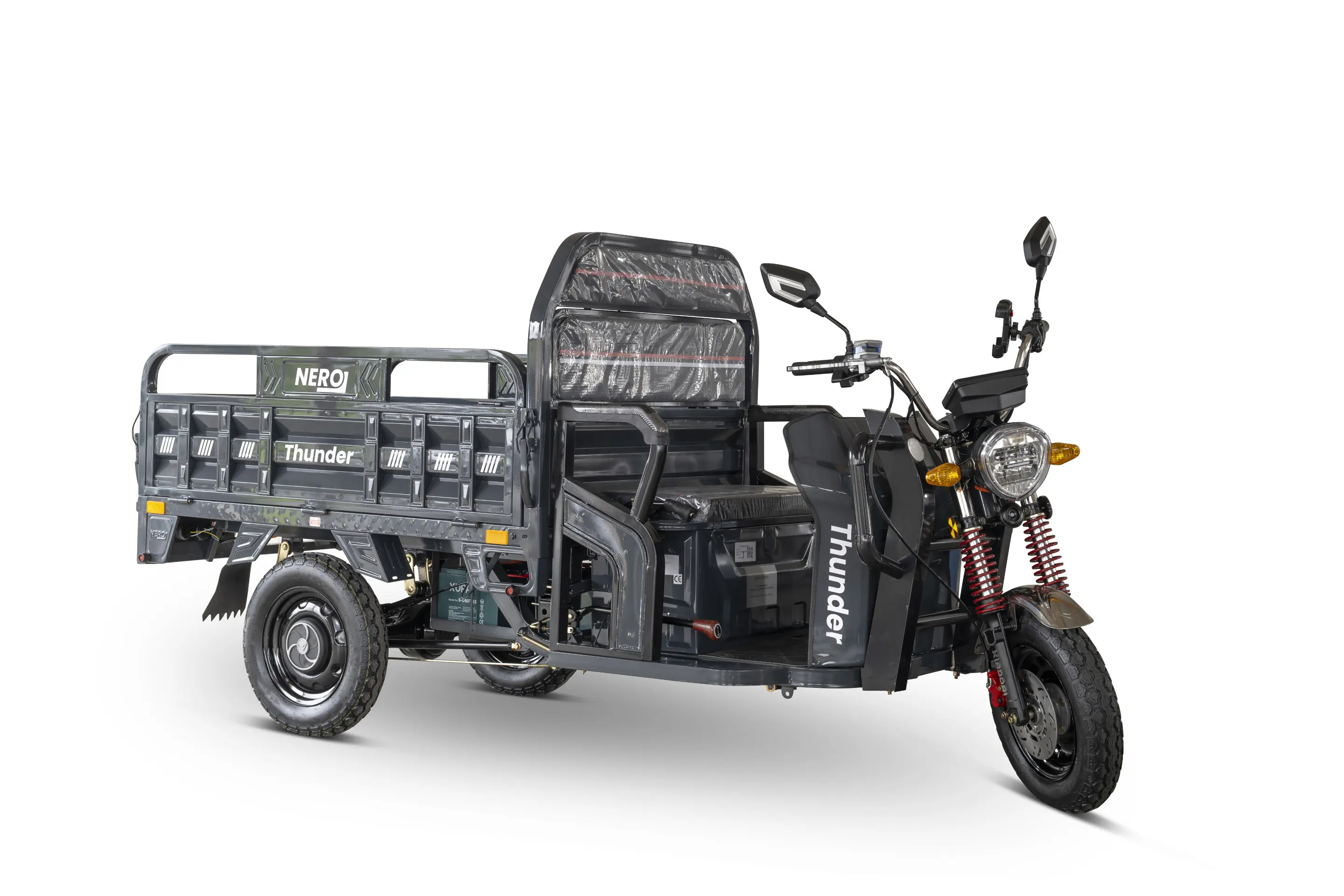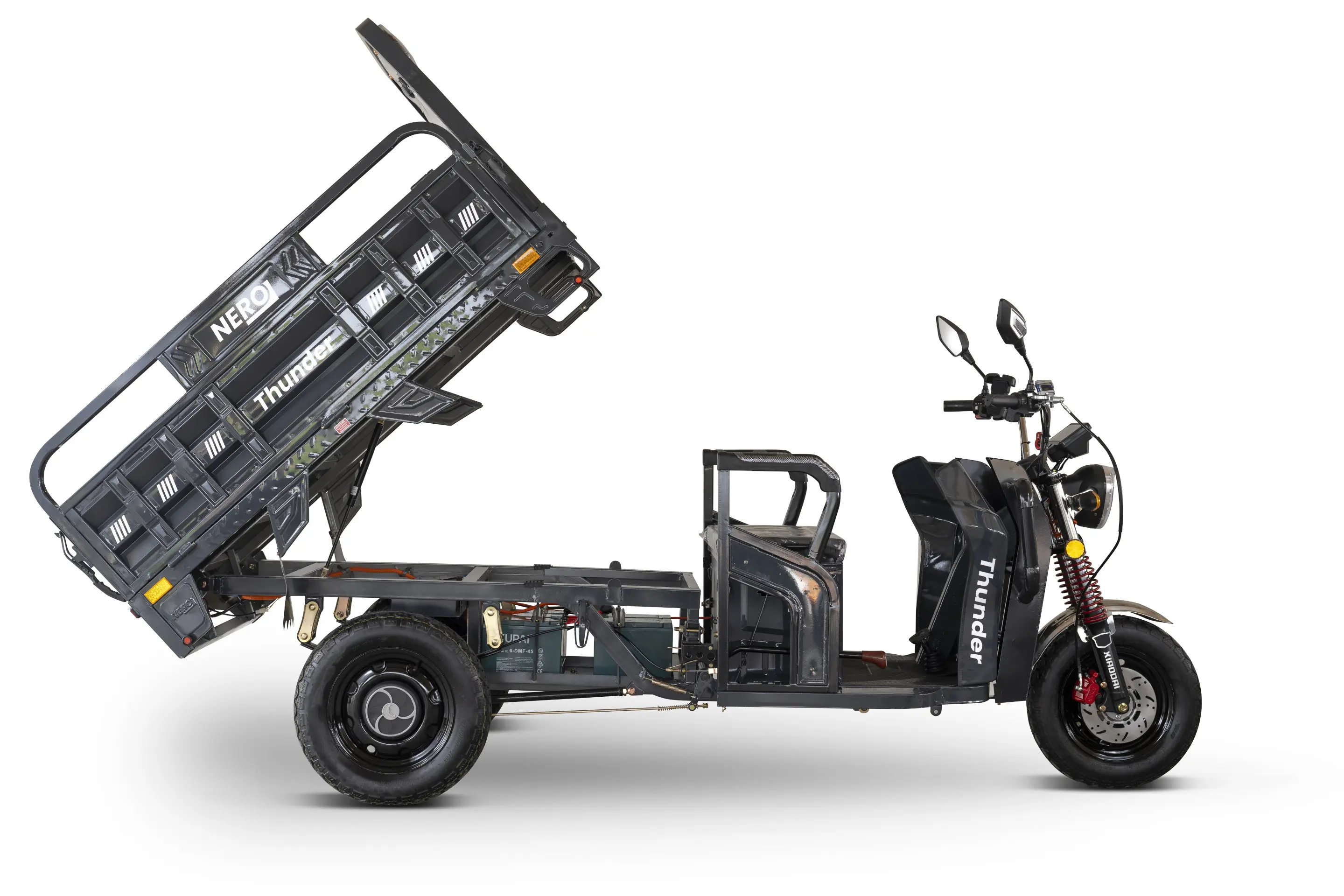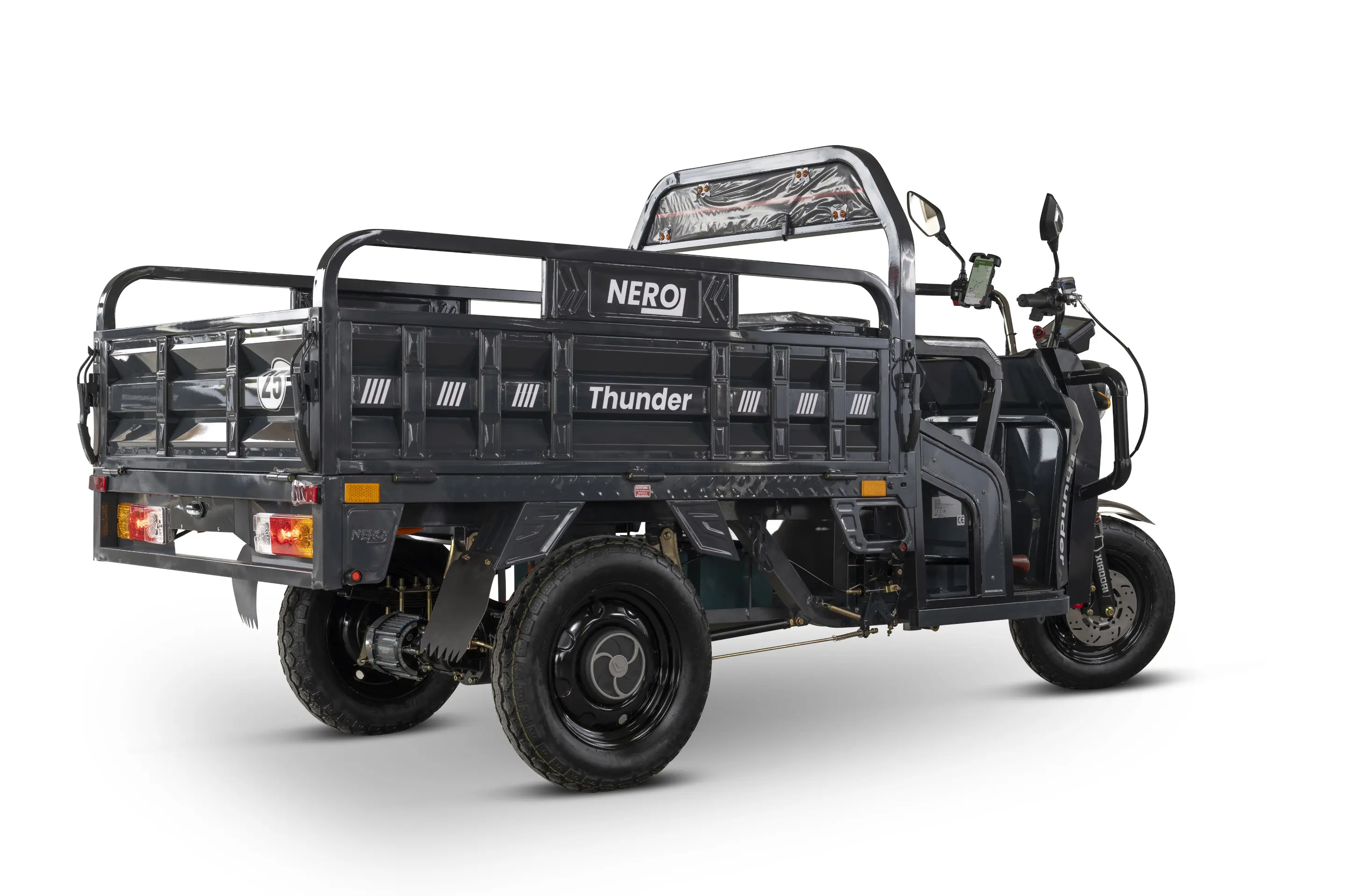 Der Nero Thunder ist ein robustes Elektro-Lastendreirad mit starker Ladeleistung, das durch seine Bauform als Fahrrad eingestuft wird. Ohne Führerschein, Versicherung oder Helmpflicht ist es ideal für den täglichen Einsatz auf Hof, Betrieb, Gelände oder auch zum entspannten Cruisen.