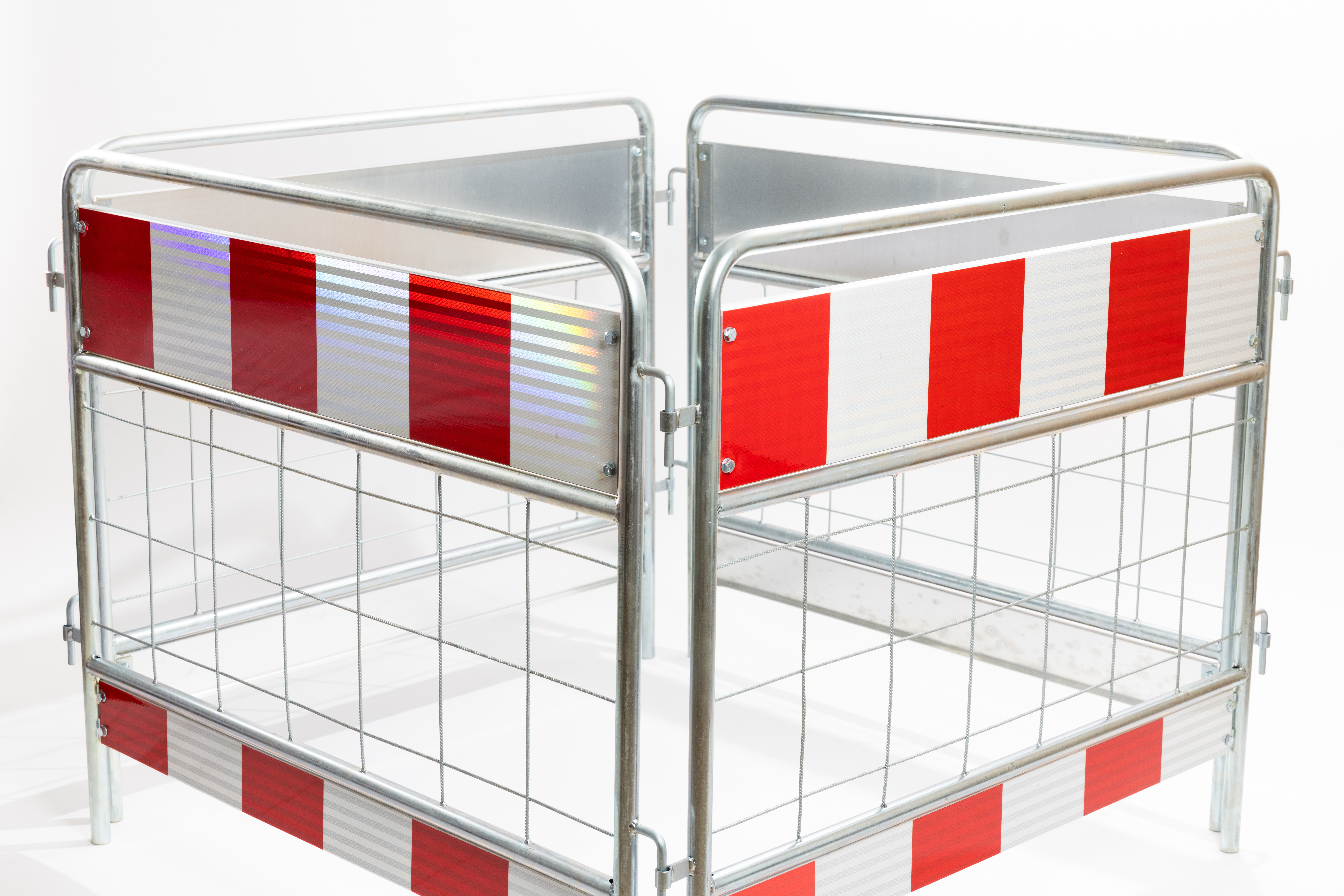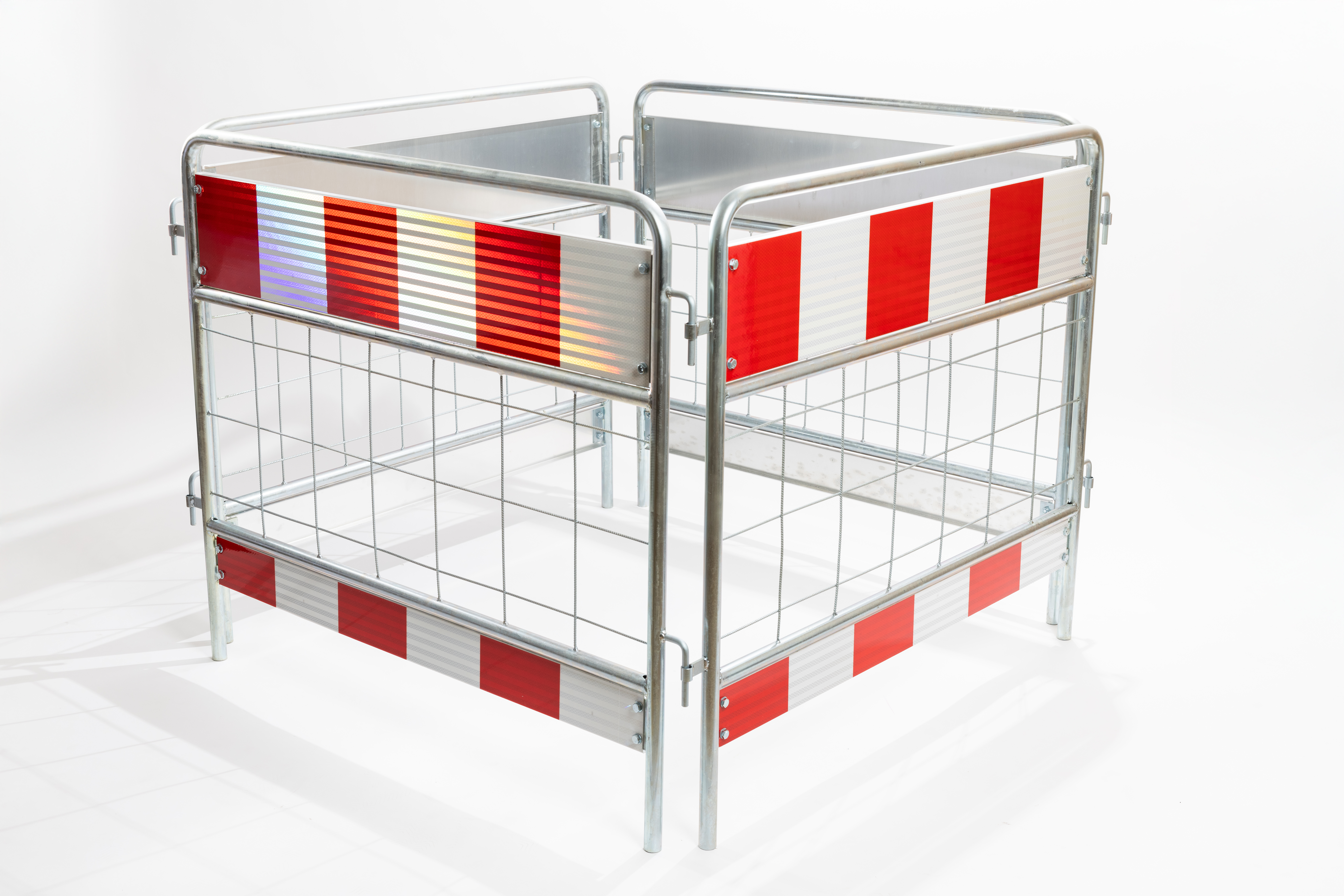 Schachtabsperrung kaufen aus Stahl - vierteilig - mit rot-weißen rückstrahlenden Folien