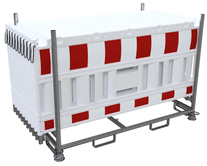 Dieses stabile Transportgestell ist die perfekte Lösung für Bauunternehmen, Verkehrssicherungsdienste und Baustellenlogistiker, die ihre Absturzsicherungen sicher, geordnet und platzsparend lagern oder transportieren möchten. Als speziell konzipiertes Stapelgestell bietet es Platz für bis zu 20 Absturzgitter und ermöglicht durch seine robuste Bauweise den zuverlässigen Einsatz im rauen Baustellenalltag.